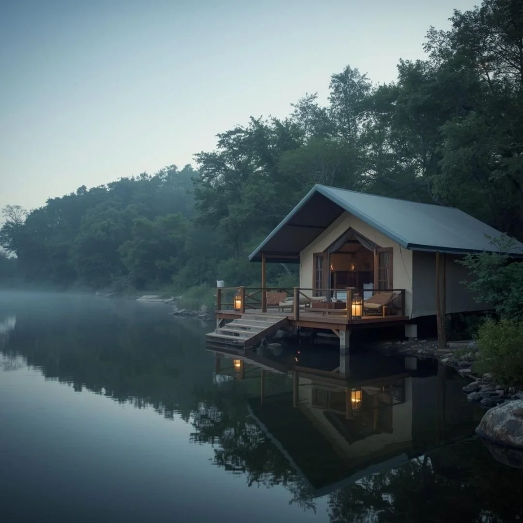 Places that hold stillness — cabins by rivers, lodges on plains, hidden forest retreats — your home in the wild.